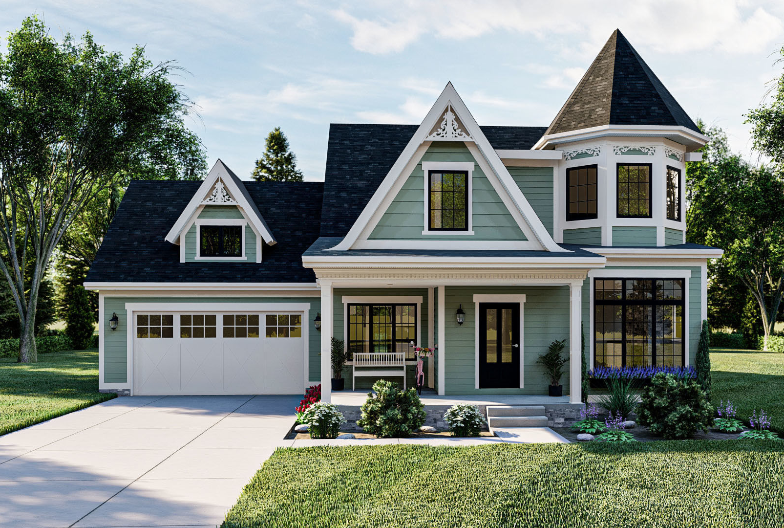 As one of our best-selling plans, this home design offers a pleasing floor plan with stunning curb appeal. Before you even step inside the home, the outdoor spaces instantly grasp your attention as they provide generous space to create the perfect outdoor living space. With the wrap-around porch making a winning first impression, you can easily imagine decorating it with a few rocking chairs, a porch swing, or however else you’d like to set the welcoming stage. For lounging and entertaining, the depth of the rear porch doesn’t disappoint as it also offers a comfortable 10-foot ceiling height. The side entry garage hosts 600 square feet of space for two vehicles and has a pedestrian door leading to the backyard as well as access to the mudroom where a half bathroom and lockers are located.