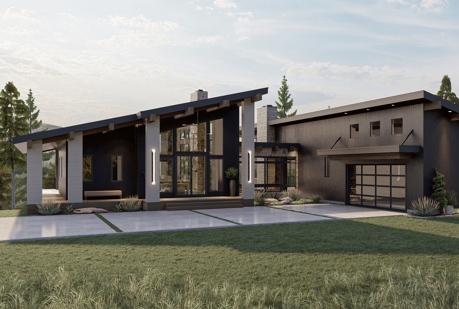 This modern farmhouse plan features 2,085 square feet with 3 bedrooms, 2.5 bathrooms, and a 2-car garage.
